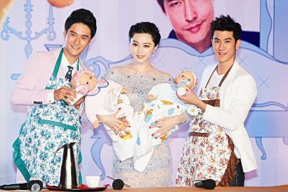范冰冰與兩大帥哥在現(xiàn)場哄孩子
