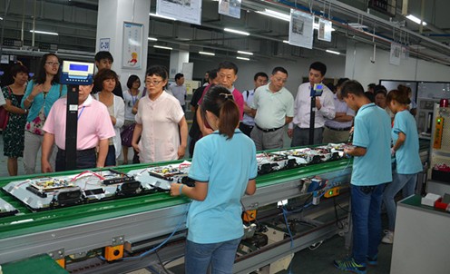 ????冠捷科技(青島)有限公司為冠捷集團和華通集團共同出資建設(shè)的顯示器設(shè)備生產(chǎn)企業(yè),廠房采用了綠色環(huán)保的設(shè)計理念,為二星級綠色建筑,整潔開闊的工作環(huán)境和井然有序的生產(chǎn)流程給人耳目一新的感受。劉甘霖副書記、范建軍副總經(jīng)理率隊首先參觀了液晶電視的裝配車間,他們仔細(xì)觀摩了工人在流水線上的組裝過程,聽取了冠捷科技相關(guān)人員對工廠管理以及銷售情況的介紹。