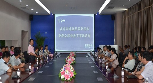 ????根據(jù)青島市委黨的群眾路線教育實踐活動領(lǐng)導(dǎo)小組《關(guān)于深化黨的群眾路線教育開展“接地氣、連民心”實踐活動的實施意見》文件精神,結(jié)合華通集團教育實踐活動安排, 8月12日,在集團黨委副書記、黨的群眾路線實踐教育活動領(lǐng)導(dǎo)小組辦公室主任劉甘霖、副總經(jīng)理范建軍的帶領(lǐng)下,集團本部及所屬益青、機械公司的黨員干部來到集團參股企業(yè)-冠捷科技(青島)有限公司,參觀了企業(yè)生產(chǎn)車間,與企業(yè)領(lǐng)導(dǎo)班子進(jìn)行了座談,并為一線職工送去防暑降溫飲料。