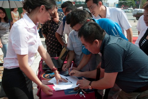 ????上午9點(diǎn)左右,精心布置的華通·金融中心售樓處外人聲鼎沸,為給等待售樓處開放的到訪客戶和嘉賓們創(chuàng)造一個(gè)舒適、涼快的環(huán)境,現(xiàn)場(chǎng)工作人員特別準(zhǔn)備了礦泉水和遮陽(yáng)傘。上午10點(diǎn),煙花禮炮齊鳴,華通·金融中心售樓處開放的剪彩儀式正式開始。
