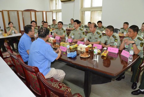 ????為推動(dòng)黨的群眾路線教育實(shí)踐活動(dòng)向深入開展,8月27日下午,華通集團(tuán)的警民共建單位—武警青島支隊(duì)部分干部到華通集團(tuán)所屬青島食品股份有限公司李滄廠區(qū)進(jìn)行了參觀和座談。