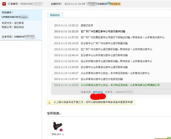 青島新聞網(wǎng)訊 又是一年雙十一,今年除電商大戰(zhàn)外的另一看點,便是各家快遞公司的表現(xiàn)。日前,記者從青島市郵政管理局獲悉,2013年度的各家快遞公司,在雙十一中的表現(xiàn)較去年相比都有明顯提升,各家都為了迎戰(zhàn)雙十一提前做好了各種預(yù)案,還增聘派件人員加班加點工作,所以基本沒有爆倉情況發(fā)生。而形勢一片大好的同時,也有“不和諧的音符”出現(xiàn)。