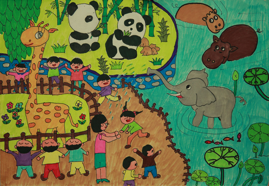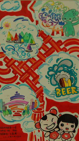 ??? 今年大賽的特色之一是許多作品將2014年將在青島舉辦的世界園藝博覽會元素融入其中,通過描繪可愛的吉祥物“青青”、青島世園會會徽、綠色大自然等,表達(dá)了孩子們對青島世園會的熱切期待,對自然的純真向往,以及對家園發(fā)自內(nèi)心的熱愛。