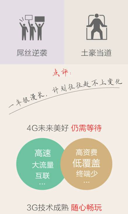 ????關于4G前面有兩篇專門文章,在發(fā)牌前即表明了我的態(tài)度:4G只是將3G拖入后3G時代,從品牌變更來看,除了土豪一擲千金拋棄舊歡,另外哥倆都是在原有品牌上升級變成4G品牌,也從另外一個角度印證了只是后3G時代,而不是革命。