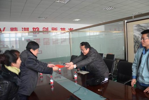 ????隨后,王磊董事長一行來到青整電子公司,首先仔細(xì)視察了生產(chǎn)車間,對產(chǎn)品生產(chǎn)組織情況和訂單銷售情況進(jìn)行了詳細(xì)了解,并對企業(yè)的生產(chǎn)經(jīng)營、股權(quán)結(jié)構(gòu)、企業(yè)領(lǐng)導(dǎo)班子組成等情況進(jìn)行了詢問,在得知目前企業(yè)兩位高管在大學(xué)畢業(yè)后,一直扎扎實實、盡心盡力的在企業(yè)任職給予了高度贊賞,并要求企業(yè)做好節(jié)前工作安排,抓好產(chǎn)品訂貨、生產(chǎn)組織等方面工作,集團(tuán)將幫助企業(yè)共同努力加快企業(yè)發(fā)展。最后,王磊董事長給企業(yè)送上了慰問金和節(jié)日祝福。
