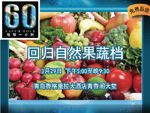 ????屆時(shí),酒店將關(guān)閉酒店大堂、餐廳、員工區(qū)域的非主要燈光及酒店外墻燈光,并放置醒目標(biāo)識(shí)以提醒、鼓勵(lì)客人共同參與此項(xiàng)活動(dòng)。同時(shí),酒店還特別為客人在青香閣大堂準(zhǔn)備了“回歸自然”果蔬檔,提供健康的有機(jī)水果蔬菜供客人免費(fèi)品嘗。