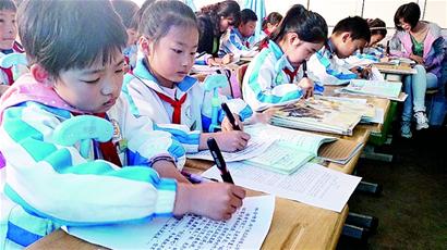 ????記者在現(xiàn)場(chǎng)看到,這是一堂語(yǔ)文觀摩課,前來(lái)聽課的不僅有開發(fā)區(qū)各所學(xué)校的老師,也有學(xué)生家長(zhǎng)。課堂上每個(gè)學(xué)生手中都有一支點(diǎn)陣筆,上課的王老師要求學(xué)生練習(xí)《趕?!芬徽n的生字,學(xué)生用的就是普通紙質(zhì)的田字格本,但全班57個(gè)學(xué)生的書寫過(guò)程全部投在教室前方的白板上,這讓現(xiàn)場(chǎng)聽課的老師和家長(zhǎng)們都頗為驚訝。另外,王老師還在白板上調(diào)出一位學(xué)生寫的生字并讓其他學(xué)生進(jìn)行點(diǎn)評(píng),學(xué)生們爭(zhēng)先恐后舉手發(fā)言,課堂氣氛非?;钴S。王老師還將每位學(xué)生書寫的生字進(jìn)行對(duì)比教學(xué)和個(gè)別點(diǎn)評(píng),沒(méi)有走下講臺(tái)便掌握了全班狀況。整個(gè)課堂互動(dòng)性很強(qiáng),完全顛覆了傳統(tǒng)教學(xué)模式。