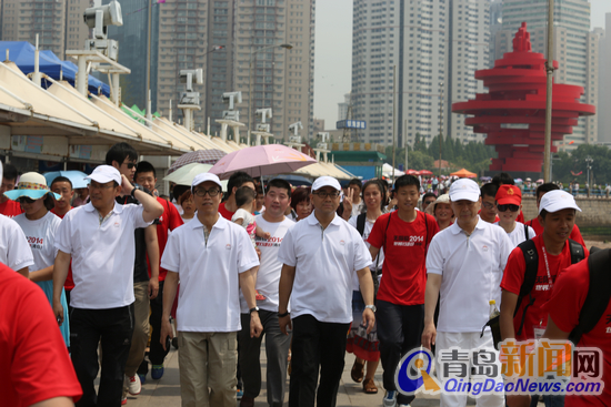 ????爸爸在這兒,媽媽、孩子、老人也都在這兒了。6月14日,近5000名“行走達(dá)人”手持印有“全民健身,你我同行”、“每天行走一萬步,健康人生無限極”、“跨出一小步,健康一大步”等標(biāo)語的小旗,途經(jīng)奧帆中心沿海觀景路、濱海步行道、五四廣場、音樂廣場、第三海水浴場、湛山五路、第二海水浴場、山海關(guān)路、匯泉路、第一海水浴場,最后抵達(dá)匯泉廣場。全程8公里的行走路途中,父親們和家人一起步履輕盈、談笑風(fēng)生,在輕松愜意中呼吸著清新濕潤的空氣,領(lǐng)略著島城最具代表性的風(fēng)景名勝。