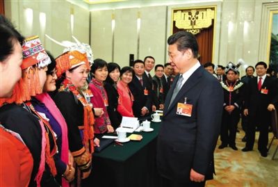 昨日,習(xí)近平參加廣西團審議,代表黨中央、國務(wù)院,向廣大婦女代表、婦女委員及全國各界婦女同胞,致以誠摯的節(jié)日問候。(新華社記者 蘭紅光 攝)
