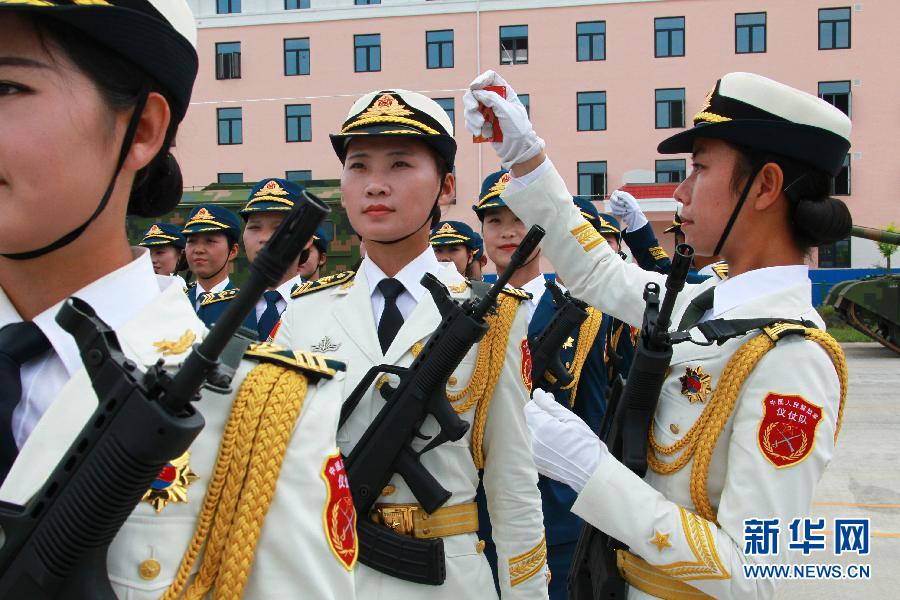 三軍儀仗隊(duì)女隊(duì)員在閱兵訓(xùn)練基地進(jìn)行訓(xùn)練(7月23日攝)。