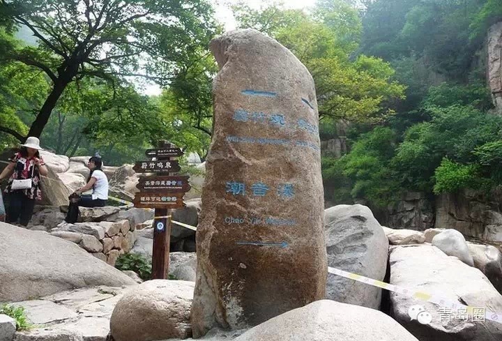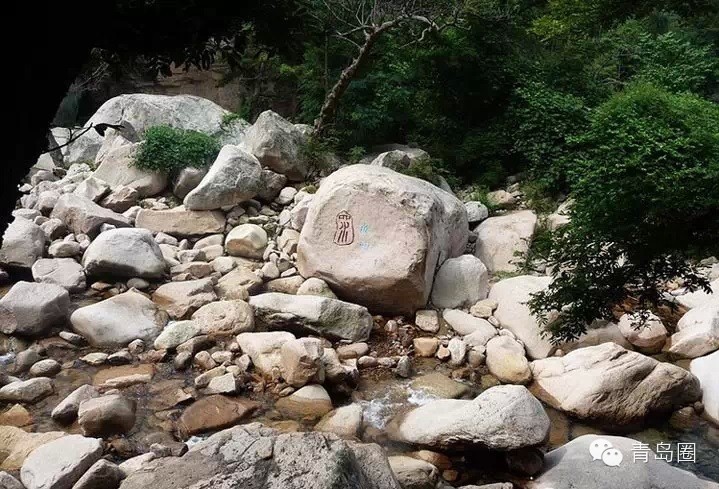 ????抱一,道家謂專(zhuān)精固守不失其道。雙石屋村,村中房屋全是石砌,村外有一深潭,二水就在這里。一水、二水處山坳中,潭水寬闊,波光粼粼,游魚(yú)嬉戲于清流之中,使深山幽谷倍增情趣。倚崖臨水,松竹蔭間是雙石屋村。由此東北去3里,是北九水以外的嶗山十二景之一“蔚竹鳴泉”。