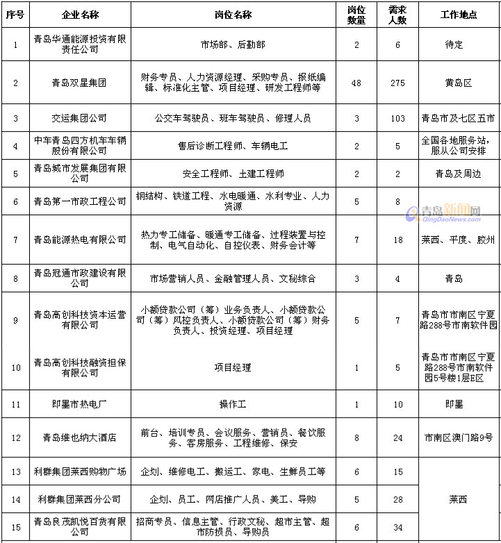????青島市首批國(guó)有企業(yè)就業(yè)扶貧崗位需求信息匯總表