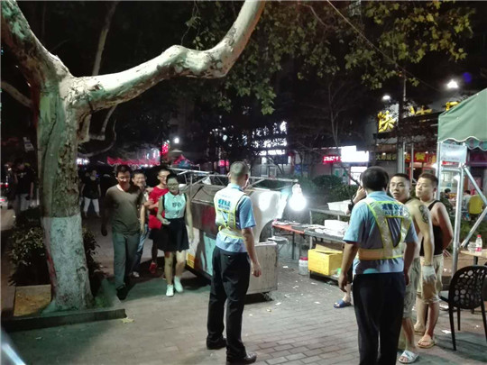 ????城管清燒烤,是夏季街頭巷尾的主題,讓我們略取7月27日一夜,看執(zhí)法中隊(duì)的“滅狼煙”行動(dòng)。登州路街道城管執(zhí)法中隊(duì)協(xié)同綜合執(zhí)法局機(jī)動(dòng)中隊(duì)共2車10人,從晚8點(diǎn)至23點(diǎn),開(kāi)始轄區(qū)露天燒烤第9次整治,繼續(xù)采取“殺回馬槍”的方式,暫扣燒烤爐3個(gè),桌椅10個(gè);遼寧路中隊(duì)圍繞處置群眾舉報(bào),組織2車10人,有針對(duì)性地展開(kāi)露天燒烤整治行動(dòng),暫扣燒烤爐具5個(gè);洛陽(yáng)路中隊(duì)1車5人,規(guī)范轄區(qū)占路燒烤12家,暫扣燒烤爐3個(gè),風(fēng)扇3個(gè);合肥路中隊(duì)出動(dòng)2車10人,規(guī)范轄區(qū)露天燒烤占路經(jīng)營(yíng),暫扣燒烤爐具3個(gè)、煤氣罐1個(gè)、桌凳一宗;延安路中隊(duì)對(duì)轄區(qū)內(nèi)夜間燒烤攤點(diǎn)及門頭業(yè)戶進(jìn)行清理整治,共沒(méi)收爐具3個(gè),占路經(jīng)營(yíng)餐桌6個(gè),馬扎12個(gè);四方中隊(duì)繼續(xù)推進(jìn)“守護(hù)清涼夏夜行動(dòng)”,出動(dòng)一輛執(zhí)法車6名執(zhí)法人員,圍繞群眾來(lái)信來(lái)訪,連續(xù)第7個(gè)夜晚進(jìn)行露天燒烤清理整治。
