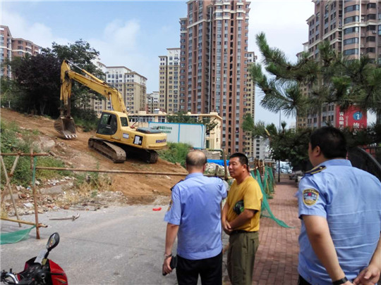 ????“綠樹(shù)藍(lán)天”是島城天然的景觀,政府為植樹(shù)造綠投入了大量人力物力財(cái)力,這邊建那邊毀令人深惡痛絕,很大程度上綜合執(zhí)法人員充當(dāng)了“守護(hù)神”。7月27日,延安路中隊(duì)接群眾舉報(bào)“尖山路38號(hào)工地有挖掘機(jī)挖掘山體破壞小樹(shù)和植被”,執(zhí)法人員立即趕赴現(xiàn)場(chǎng)制止了這起違法行為,并依法啟動(dòng)調(diào)查程序;7月28日,合肥路中隊(duì)針對(duì)群眾舉報(bào)恒苑小區(qū)毀綠種菜違法行為,出動(dòng)一車5人,配合街道社區(qū)進(jìn)行了整治,共清除毀綠種菜面積300余平方米;7月28日,浮山新區(qū)中隊(duì)加強(qiáng)與社區(qū)聯(lián)動(dòng),出動(dòng)執(zhí)法人員4人,對(duì)浮山后六小區(qū)57號(hào)樓在建圈占綠地24平方米的違建進(jìn)行了及時(shí)制止與拆除,7月29日,該中隊(duì)及時(shí)查處浮山后四小區(qū)43號(hào)樓西硬化綠地一處,暫扣施工工具3件;7月27日,群眾舉報(bào)“海逸景園1號(hào)樓綠化帶被破壞,不法業(yè)主用水泥塊硬化,準(zhǔn)備蓋建筑物”,即墨路中隊(duì)派出4名執(zhí)法人員,配合社區(qū)當(dāng)場(chǎng)進(jìn)行了制止,并對(duì)構(gòu)筑物進(jìn)行了拆除。