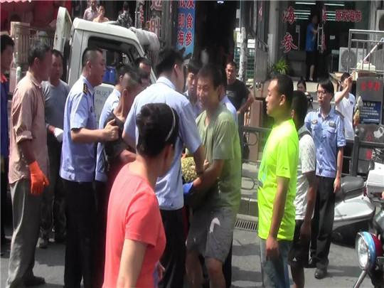 ????七月的青島,夏蟬唧唧,熱浪滾滾。城管執(zhí)法人員依然像往常一樣,沿街規(guī)范門頭業(yè)戶跨門經(jīng)營(yíng),依法取締無(wú)證商販的占路經(jīng)營(yíng)。7月22日,市北城管登州路中隊(duì)2輛執(zhí)法車,載著10名執(zhí)法隊(duì)員對(duì)南山市場(chǎng)周邊和榮華小區(qū)的占路經(jīng)營(yíng)現(xiàn)象進(jìn)行整治,在炎炎烈日炙烤下,汗水已經(jīng)浸透了執(zhí)法人員的衣服,當(dāng)清理到榮華小區(qū)內(nèi)一個(gè)占路經(jīng)營(yíng)的菜攤前,無(wú)證攤販不服從執(zhí)法人員的管理,對(duì)占路經(jīng)營(yíng)的行為拒不改正,無(wú)奈之下,執(zhí)法人員只好依法對(duì)占路經(jīng)營(yíng)的物品進(jìn)行暫扣,攤主當(dāng)即辱罵和推搡執(zhí)法人員,并動(dòng)手搶奪被暫扣的物品,阻擾執(zhí)法人員的工作。旁邊的無(wú)證攤主也“聲援”這位暴力抗法的“同行”,場(chǎng)面十分混亂。整個(gè)過(guò)程中,城管執(zhí)法人員在宣傳法律的同時(shí),對(duì)攤主的過(guò)激行為保持冷靜克制,最終在執(zhí)法人員的堅(jiān)持下,暫扣了占路經(jīng)營(yíng)的物品,取締了該攤販的違法行為。城管執(zhí)法人員按照法律法規(guī)依法對(duì)違法犯罪行為進(jìn)行管理,執(zhí)法目的是提升城市市容環(huán)境秩序,為市民宜居生活保駕護(hù)航,希望得到市民的支持和理解。