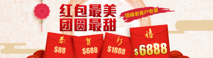 2017春節(jié)賀禮提前送到,簡單直接拿紅包!為回饋廣大老客戶的支持,領峰送出每位高達6,888美金紅包大賞,伴您與家人共渡新春團圓佳節(jié)!
