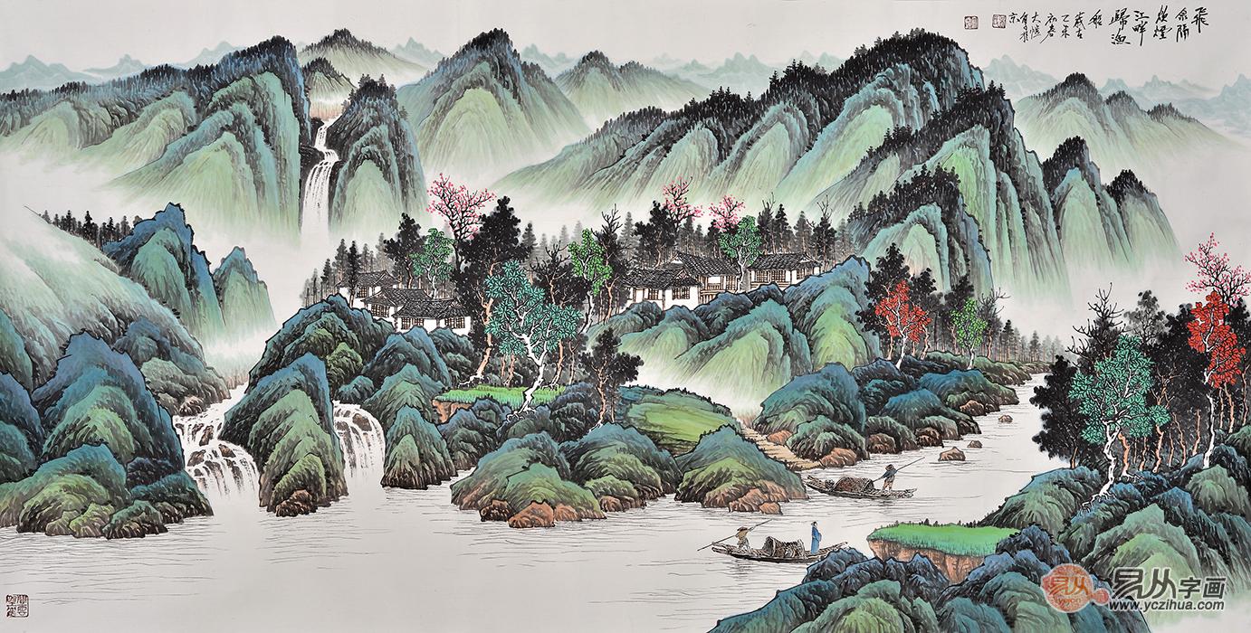 中國美術(shù)學(xué)會吳大愷青綠山水畫作品《歸舟圖》作品來源:易從網(wǎng)