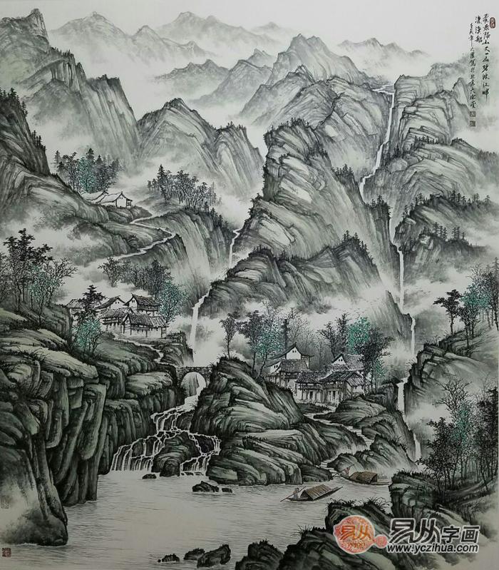 【作品點評:《萬山錦秀鴻業(yè)千秋》是來自畫家石開的山水畫佳作,他經(jīng)常深入大自然寫生采風(fēng),領(lǐng)略造化之神奇與壯美,其作品追求大、清、厚、蘊的藝術(shù)品格,給人以強烈的親和力。這幅畫里,奇石嶙峋,蒼松挺拔下,潺潺的小溪流經(jīng)小巧人家,站在上面納涼聽風(fēng),宛如身處仙境般逍遙自在。作品注重筆情墨韻,給人一種清秀幽靜,蒼茫曠遠(yuǎn),形神兼?zhèn)涞乃囆g(shù)美感,從石開的山水畫來看,不僅畫面簡凈、松秀,而且清氣襲人。這種彌漫于尺幅間的清潤之氣,所傳遞的是一種來自于心靈底處的無聲律動,又像是月夜清空下一曲清遠(yuǎn)的笛聲。古稀之年的石開是您收藏的不二之選!】