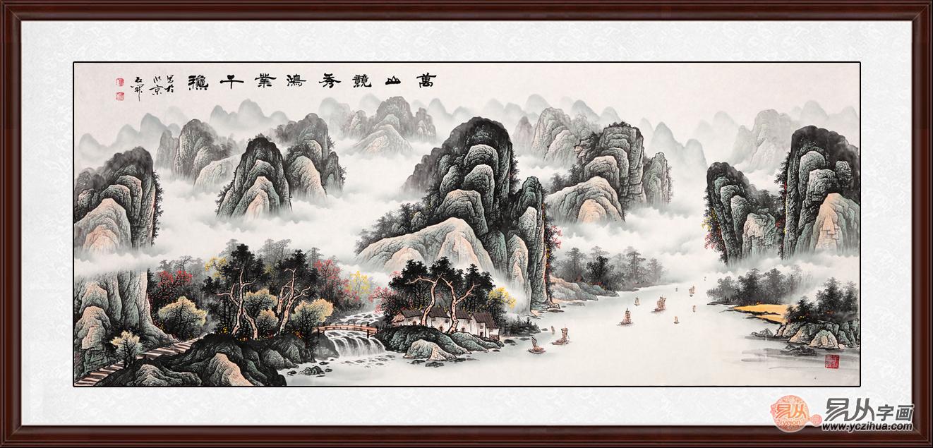 魯人石開最新力作八尺山水畫作品《萬山錦秀鴻業(yè)千秋》作品來源:易從網(wǎng)