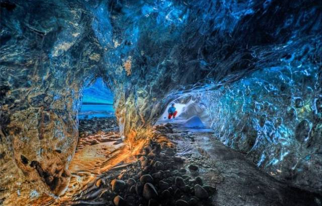 完全自然形成的冰洞是冰島最令人震撼的奇觀之一,它就像是瞬間凝固的巨浪一般。