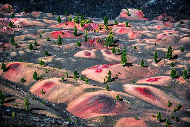 整個國家公園中最主要的景觀就是拉森火山,是世界上最大的穹頂火山,火山坡上的沙丘呈現斑斕的彩色,想油畫一般艷麗。