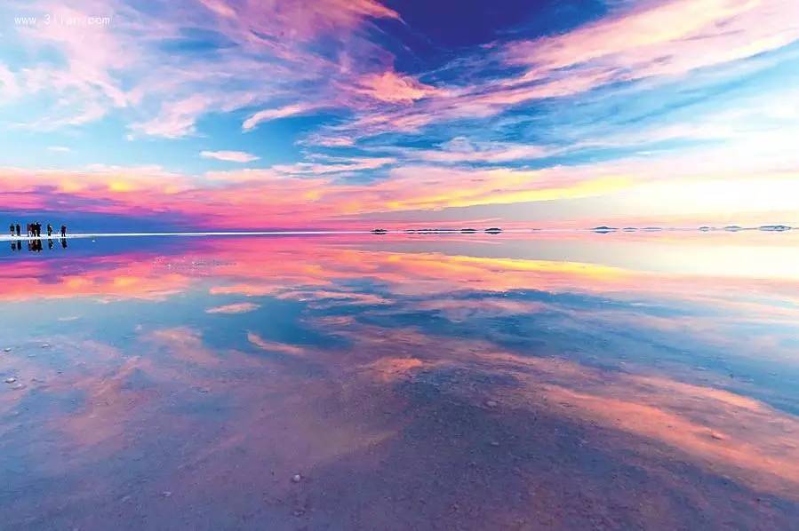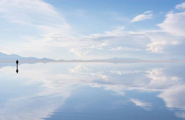 烏尤尼鹽沼在玻利維亞波托西省西部高原內,它被雨水注滿,形成一個淺湖,雨后,湖面像鏡子一樣,反射著好似不屬于地球上的令人窒息的天空景色。