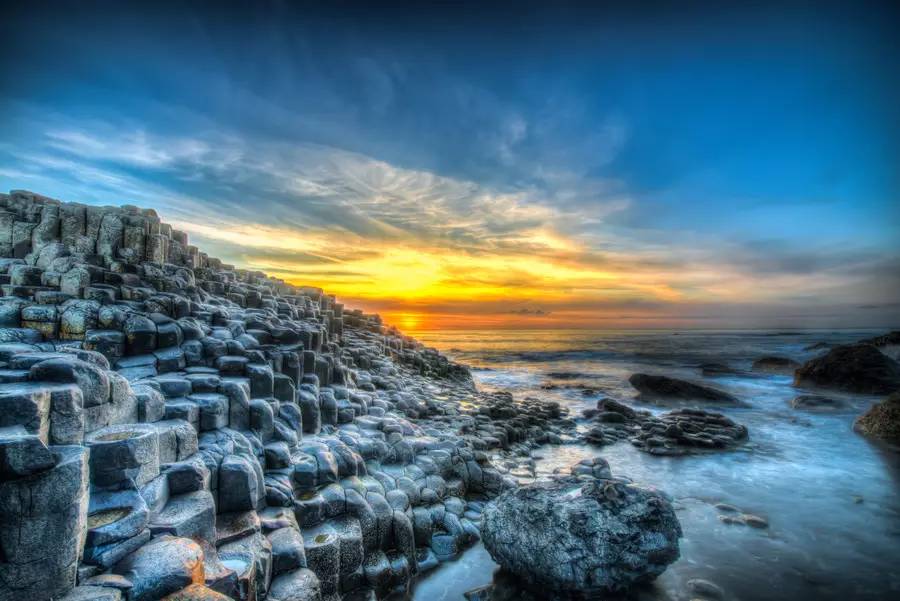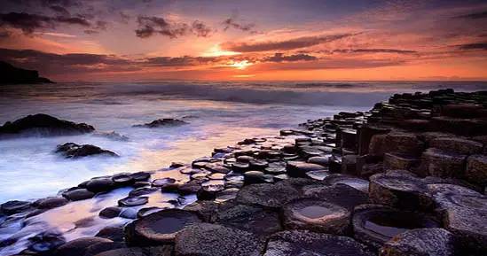 巨人之路位于北愛爾蘭貝爾法斯特西北約80公里處大西洋海岸,由數萬根大小不均勻的玄武巖石柱聚集成一條綿延數千米的堤道,堪稱世界自然奇跡。
