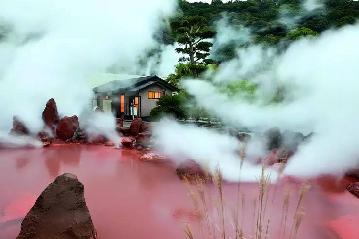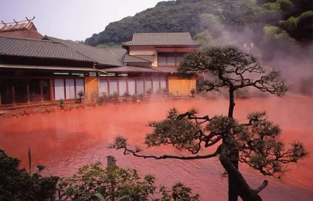 血池溫泉是日本別府知名的“地獄”溫泉。它泛著血紅色的泉水,好似想象中地獄的景象,而這種紅色全得益于水體中富含的元素。