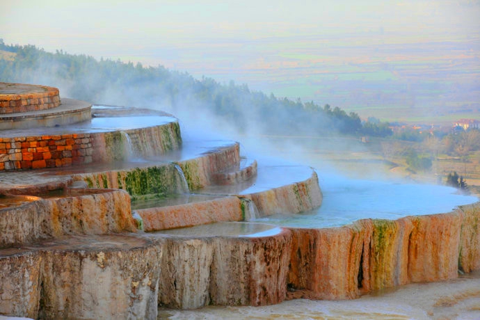 土耳其西南部,層層相疊的半圓形白色天然石灰?guī)r階梯地形,其色白如棉,遠看就像棉花團,棉花城堡由此得名。