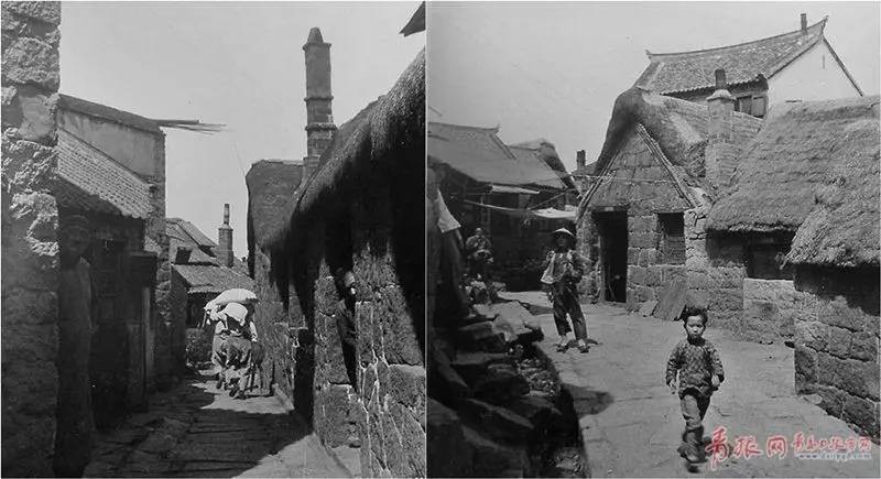 ????20世紀(jì)初,青島沿海就地取材建造海草房,一小姑娘走在小路上。