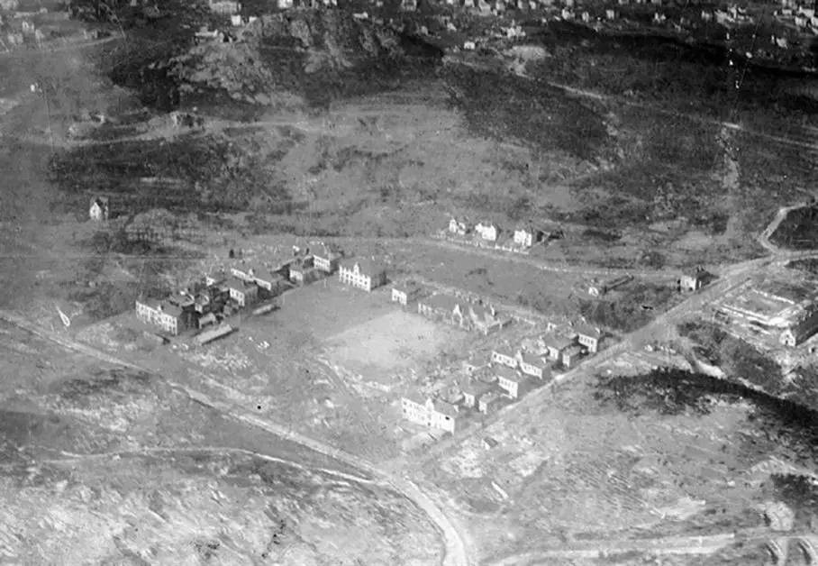 ????1928年,日本對(duì)中國(guó)從空中和陸地進(jìn)行了全面的偵察。圖為德國(guó)修建的軍營(yíng),一戰(zhàn)后日本占領(lǐng)青島時(shí)改名為旭兵營(yíng)。青島主權(quán)回歸后,軍營(yíng)舊址曾被用作膠澳中學(xué)校舍,1938年青島再度被日軍占領(lǐng)后,校舍又被改造成軍營(yíng)。