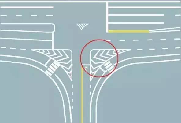 ????導(dǎo)流線主要為一個或幾個根據(jù)路口地形設(shè)置的白色V形線或斜紋線區(qū)域,主要用于過寬、不規(guī)則或行駛條件比較復(fù)雜的交叉路口,立體交叉的匝道口或其他特殊地點,