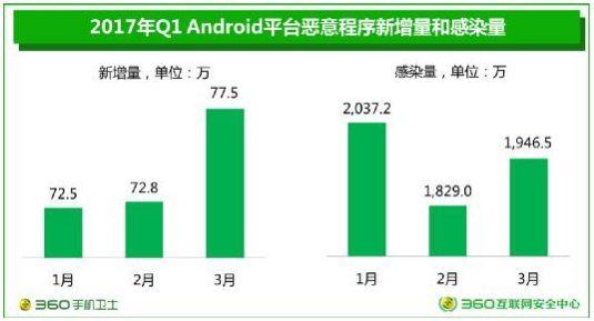 2017年Q1Android平臺(tái)惡意程序新增量和感染量