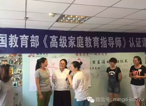 ????在得知《高級家庭教育指導師》認證課程的信息之后,兩天時間里,平臺十多個分校立即決定開展升級培訓,并迅速選派28名優(yōu)秀老師參加《高級家庭教育指導師》的認證課程。經(jīng)過三天的封閉式學習,課程于昨天順利結(jié)束,完善升級后的教師團隊將更好的服務于各自分校、支持到更多的學員和家庭、為社會的和諧進步做出貢獻。銘思教育優(yōu)秀老師代表發(fā)言,他們有的也是各分校負責人,在介紹自己的同時,更多的是表達學習的決心,他們深知教育工作的神圣使命,宣言要將所學用于日后的學員成長中。
