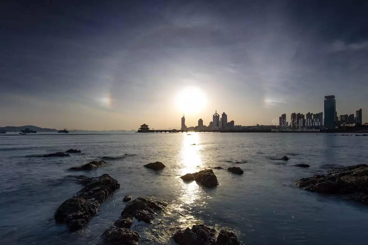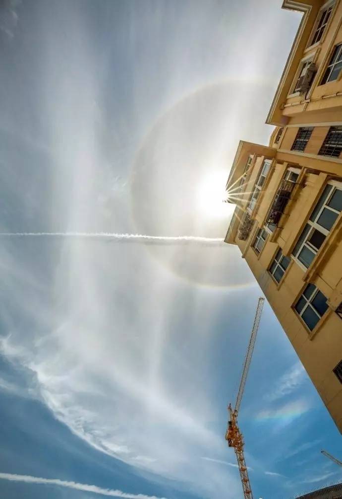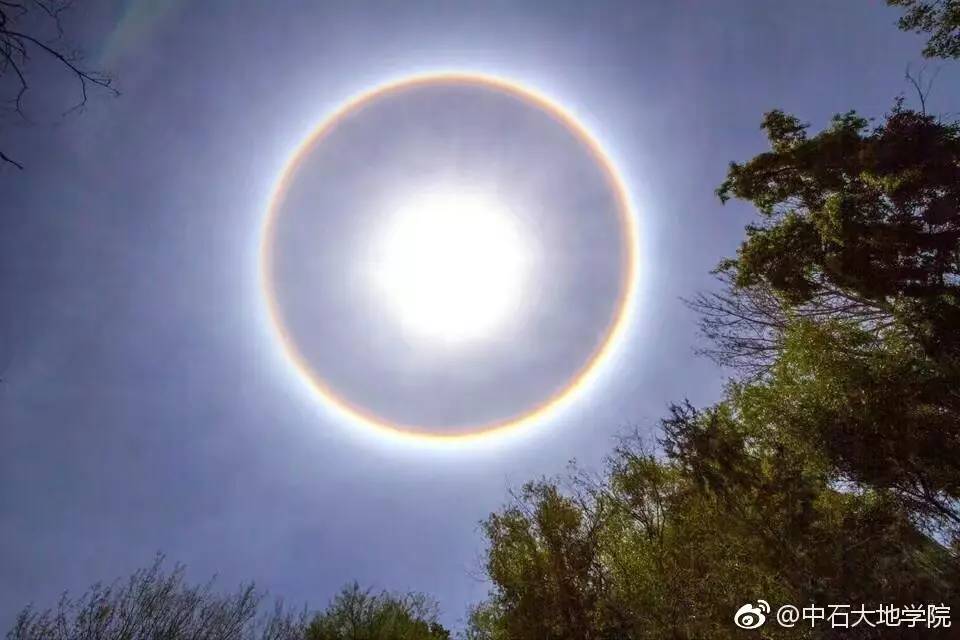 今天,青島上空驚現(xiàn)“日暈”奇觀。(via @中石大地學院)