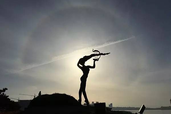 ????6月4日,青島上空驚現(xiàn)“日暈”景象,