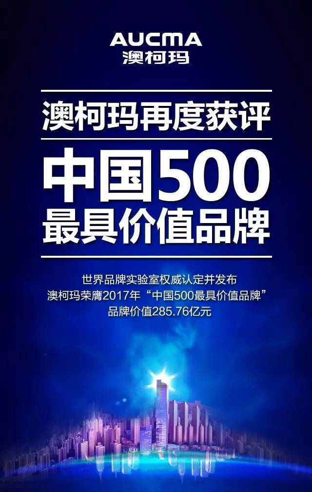 ????2017年6月22日,由世界品牌實(shí)驗(yàn)室(World Brand Lab)主辦的第十四屆“世界品牌大會(huì)”在北京舉行。會(huì)上發(fā)布了2017年《中國(guó)500最具價(jià)值品牌》分析報(bào)告。澳柯瑪憑借近年來(lái)品牌影響力的不斷提升,繼2016年榮登中國(guó)品牌500強(qiáng)榜單后,今年再次成功登榜,品牌價(jià)值也由去年的234.58億元,攀升至285.76億元人民幣。