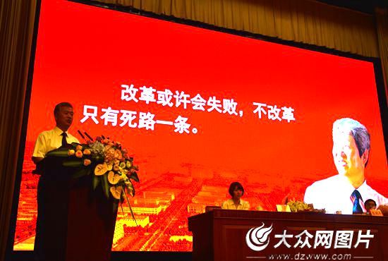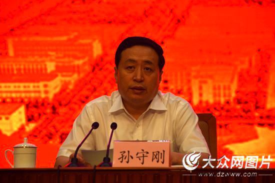 山東省委常委、宣傳部長孫守剛主持報告會。(記者 王宗陽攝)