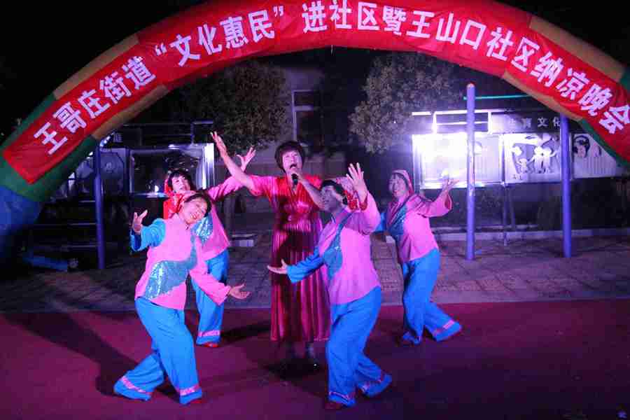 ????8月8日晚,第二場“文化惠民”晚會在王山口社區(qū)正式上演,晚會現(xiàn)場人山人海,僅王山口社區(qū)就有600余名群眾歡聚一堂,居民們自帶小馬扎,整齊的坐在舞臺周圍。晚會中,老中青演員們齊上陣,從廣場舞到歌曲串唱,從小品相聲到戲曲魔術(shù),使觀眾目不暇接,三個多小時的晚會,18個節(jié)目精彩紛呈,居民們大呼過癮,給悶熱的夏季夜晚帶來了歡聲笑語。