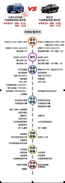上述中,我們對納瓦拉與中興領(lǐng)主在外觀、內(nèi)飾、動力和底盤等四個方面進(jìn)行了詳細(xì)分析,下面我們用一張圖直觀了解一下兩款產(chǎn)品的具體產(chǎn)品數(shù)據(jù)和配置差異: