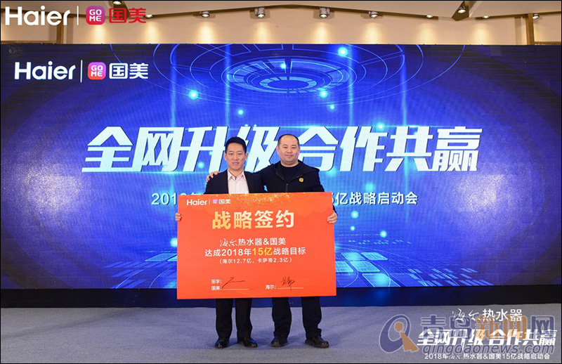 1月27日,2018年海爾&國(guó)美戰(zhàn)略啟動(dòng)會(huì)議在青島海爾洲際酒店召開(kāi)。在會(huì)上,海爾與國(guó)美強(qiáng)強(qiáng)合作,共同簽訂15億元大單,全面覆蓋電熱水器、燃?xì)鉄崴?、熱泵產(chǎn)品與凈水產(chǎn)品四大品類。此外,海爾的42個(gè)中心以及國(guó)美的62個(gè)分公司的負(fù)責(zé)人也全部列席會(huì)議并進(jìn)行簽約。這是行業(yè)首次采用總部簽約后,各中心、分公司同時(shí)現(xiàn)場(chǎng)簽約的模式。2018年,雙方將采用全網(wǎng)融合的方式拓展三四級(jí)市場(chǎng),以滿足鄉(xiāng)鎮(zhèn)用戶的購(gòu)物需求,預(yù)計(jì)全年銷售增額1.8億。