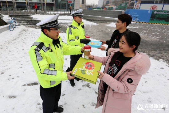 28清晨,青島必勝客員工已在店里忙碌起來,他們正井然有序地在準(zhǔn)備必勝客熱飲檸檬紅茶和九合一比薩,為給守護(hù)這座城市平安而佇立在寒風(fēng)中的交警送上驚喜和關(guān)懷?!敖痪拘量嗔?,喝一杯熱檸檬紅茶吧,大雪路滑,大家更需要你們,你們是青島雪景中一道美麗的風(fēng)景線?!币晃唤痪瘎傊笓]完路況便收到必勝客餐廳工作人員遞上的熱飲。收到熱飲的交警喝上幾口熱飲暖暖胃,也溫暖了因長時間站在冰雪中凍僵了的手。無論艱辛還是挑戰(zhàn),交警們都堅(jiān)守在最需要他們的崗位上。青島必勝客此舉不僅僅是一份溫暖和關(guān)懷,更是傳遞給他們一份“必勝”的信心與“正能量”。告訴他們,他們一直感動著我們,我們也會永遠(yuǎn)陪伴著他們。