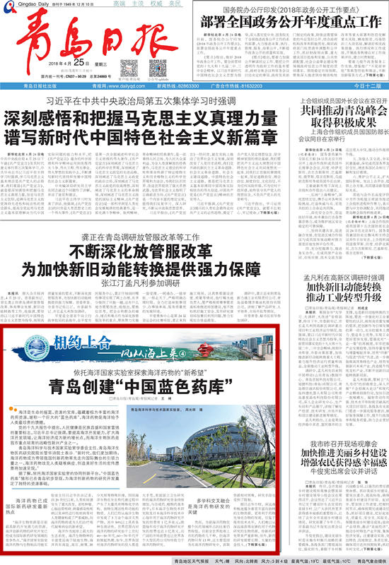 2018年4月25日青島日?qǐng)?bào)1版截圖