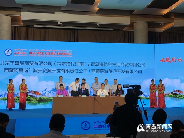 西藏冰川礦泉水有限公司等單位與青島企業(yè)簽署合作協(xié)議。