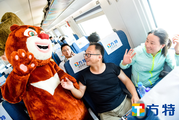 本次列車是華強方特集團今年冠名的第四組,除此之外,還冠名了往返于上海虹橋-深圳北、哈爾濱-青島北、南寧東-北京西等城市間的3對高鐵列車?!案哞F線路將串聯(lián)起方特已入駐的20余座城市,形成良好的區(qū)域聯(lián)動。此番借力高鐵傳播方特‘與人同樂’全新主張,目的就是將更多的歡樂帶給廣大游客,也歡迎游客朋友們乘坐高鐵,前往沿線的方特主題樂園體驗游玩?!?span style="text-indent: 32px;">佟興說。