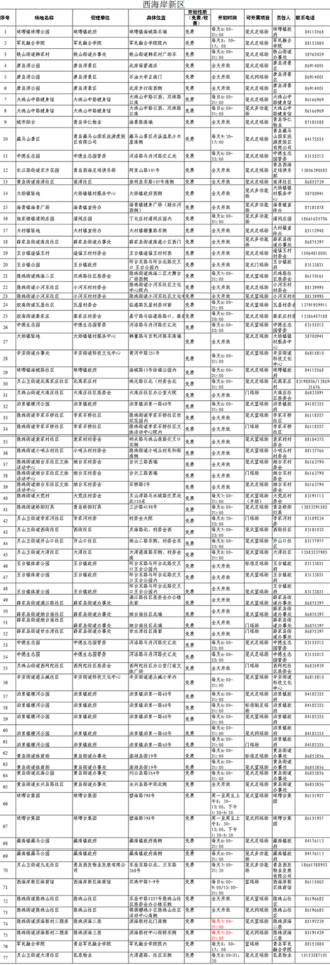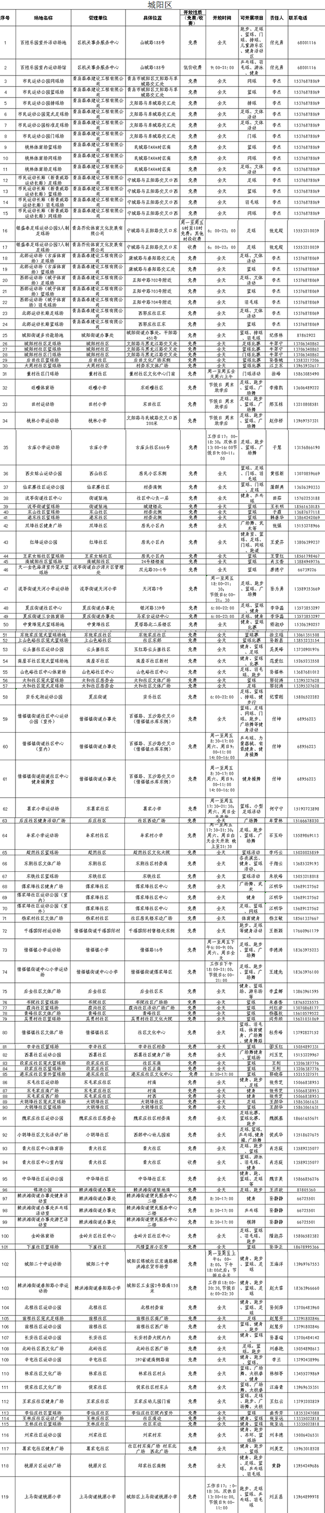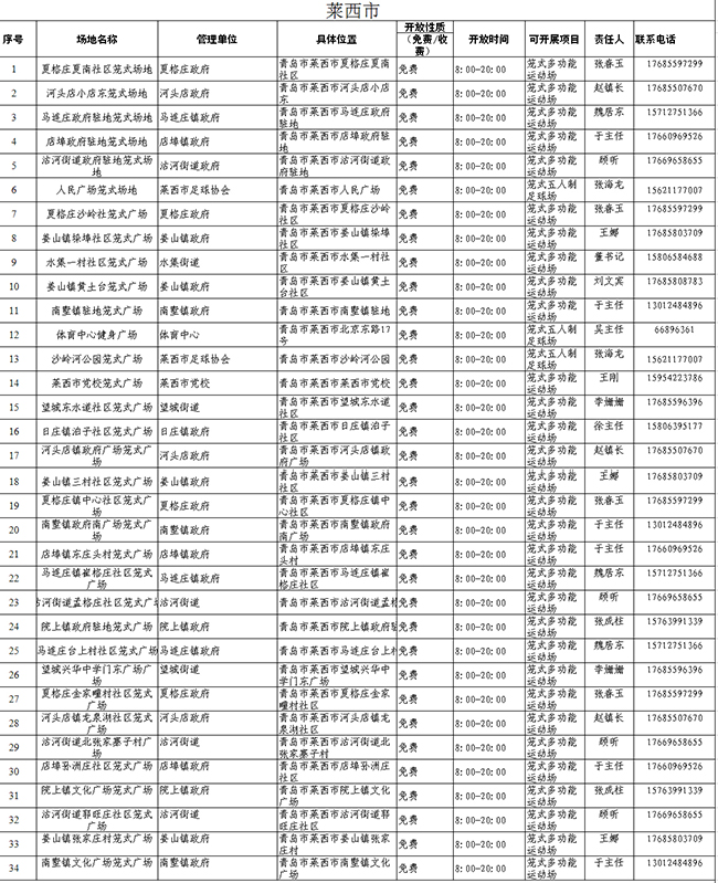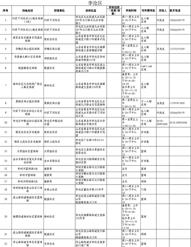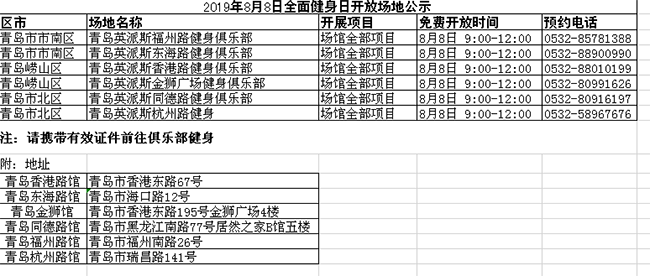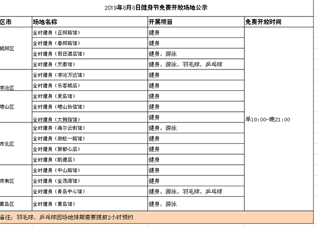 除了“全民健身日”的相關(guān)活動(dòng),平時(shí),青島市也免費(fèi)開放了近500處公益性健身場(chǎng)地,供市民參與健身運(yùn)動(dòng)。小編將公益性做成表格,歡迎大家按圖索驥,開展體育運(yùn)動(dòng)!