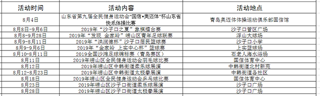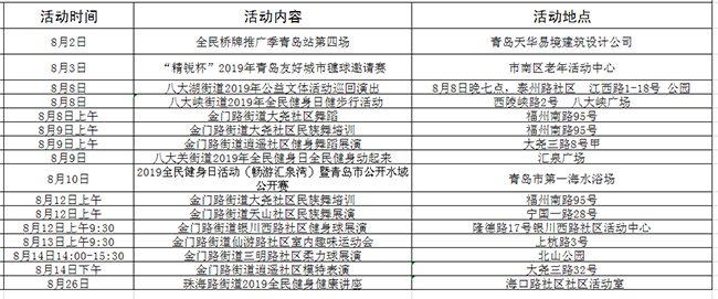 除了免費(fèi)場(chǎng)地開放外,熱情的8月碰撞時(shí)尚的青島,近百項(xiàng)體育賽事、活動(dòng)覆蓋了整個(gè)青島的夏季,一場(chǎng)體育盛宴等待你來(lái)品嘗。