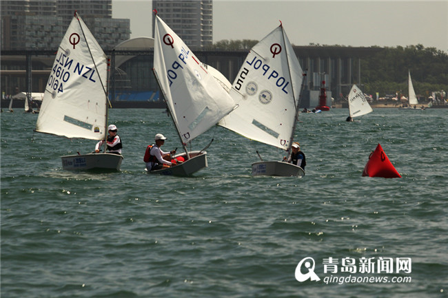 上午10時,參賽隊員們行駛著參賽船只進(jìn)入比賽領(lǐng)域。隨著比賽號角的吹響,遼闊的海面上變得斑駁起來。一鼓作氣,奮勇向前,小隊員們一個個卯足了勁兒,在沉著冷靜中判斷風(fēng)向,操縱帆船。一艘艘風(fēng)帆行駛在藍(lán)色海域中,形成一道亮麗的城市風(fēng)景線。一天的忙碌落下帷幕,青島國際OP帆船賽金銀組分別完成了4輪比賽,青島OP帆船賽金銀組分別完成了3輪比賽。