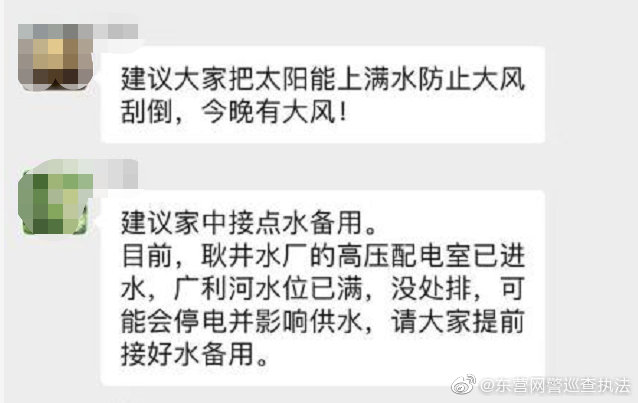 近日,受臺(tái)風(fēng)“奇馬利”來襲影響,部分微信群傳播以下信息:目前,耿井水廠的高壓配電室已進(jìn)水,廣利河水位已滿,沒處排,可能會(huì)停電并影響供水,請(qǐng)大家提前接好水備用。經(jīng)東營市公安局東營分局核實(shí),耿井水廠并未停電及影響供水,本條信息是謠言,請(qǐng)廣大群眾勿信謠、勿傳謠。