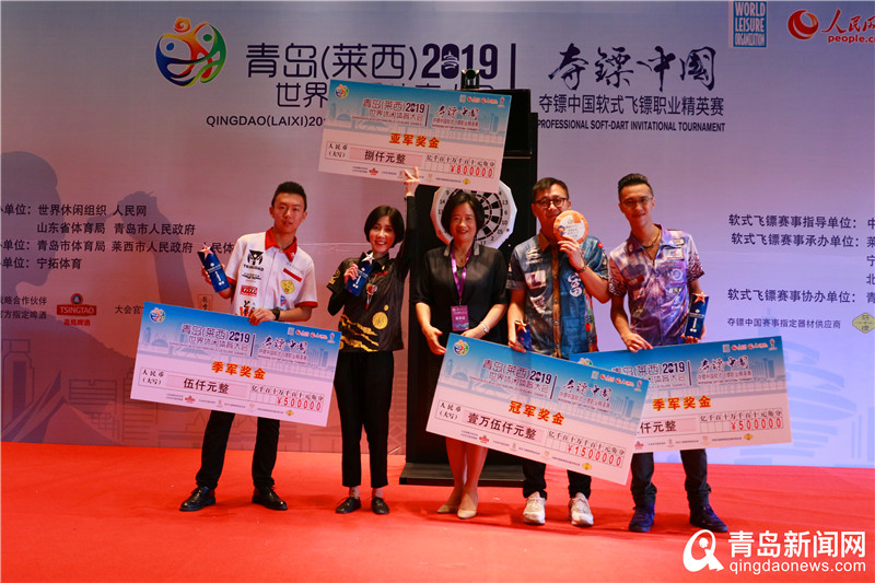 青島新聞網(wǎng)8月17日訊 (記者 劉文超)2019奪鏢中國·軟式飛鏢職業(yè)精英賽在青島萊西九頂莊園順利閉幕。經(jīng)過一整天激烈的比賽,伍其富在決賽中頂尖鏢手周莫默,比賽過程一波三折,伍其富以4:2拿到賽點,比賽進入關(guān)鍵的第7局,當(dāng)伍其富剩下8分時,給了周莫默絕地反擊的機會,周莫默頂住壓力,以60、17*3、50的打法實現(xiàn)了161高拆,成功將比賽拖入第8局。不過,第8局中是伍其富的先手局,再沒有給周莫默任何機會,一路領(lǐng)先,最終以5:3拿下本次賽事的冠軍。周莫默惜敗收獲亞軍。伍其富在賽后接受采訪時表示,周莫默水平很高,私下李兩人也是非常好的朋友,經(jīng)常組隊參加世界大賽。